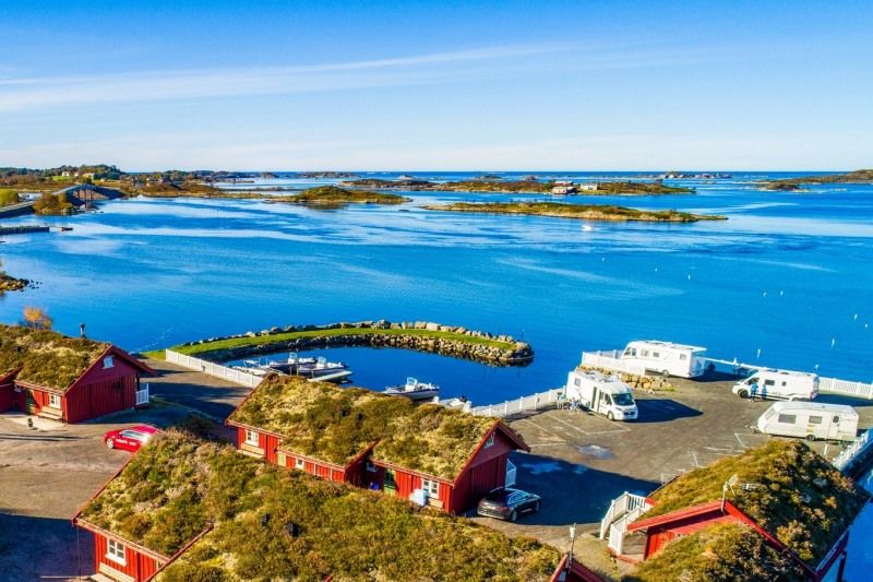 Kleine camping direct aan de Atlanterhavsveien. Restaurant bij de camping. Prachtig uitzicht over zee en de ondergaande zon. Ook accommodaties te huur. Supermarkt op loopafstand.